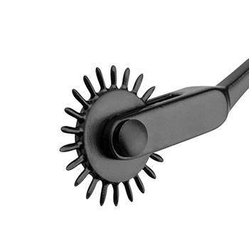 La roue de Wartenberg est un instrument de jeu sensoriel par excellence. Ses multiples pointes métalliques créent une stimulation unique lorsqu'elles roulent sur la peau, provoquant des picotements qui oscillent entre chatouille légère et sensation piquante selon la pression exercée. L'anticipation de chaque passage de la roue intensifie l'excitation, tandis que le contact froid du métal sur la peau nue ajoute une dimension supplémentaire au jeu. Idéale pour explorer les zones érogènes comme l'intérieur des cuisses, le cou, le dos ou les tétons.