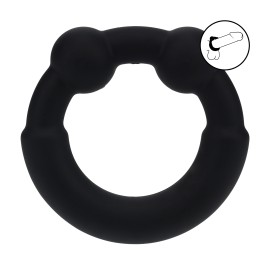 Sa spécificité tient à ses deux billes en acier enchâssées dans le silicone en position dorsale — visibles sur la partie supérieure de l'anneau. Positionné à la base du pénis, ce relief sphérique se retrouve orienté vers le haut, où il exerce une pression discrète mais constante à chaque va-et-vient. Pendant la pénétration, les billes créent une stimulation de friction supplémentaire pour le partenaire. L'acier, matériau dense et non compressible, génère une légère sensation de traction gravitationnelle que le silicone seul ne peut pas reproduire.