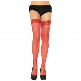 Des bas auto-fixants en résille noire.