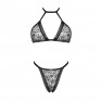 Cet ensemble, de la marque Obsessive, est composé d'un soutien-gorge aux bonnets en forme de triangle avec une attache "collier" autour de votre cou et une autre dans le dos. Toutes les lanières sont ajustables afin de s'adapter parfaitement à votre silhouette !
