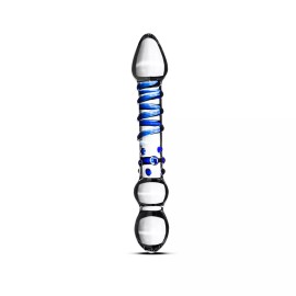 Ce sextoy convient à la fois pour une pénétration vaginale et anale, en toute sécurité. Il est étanche et compatible avec tous les types de lubrifiants (eau et silicone). Son look élégant — verre transparent orné de spirales bleues — en fait un accessoire aussi plaisant à utiliser qu’à admirer.